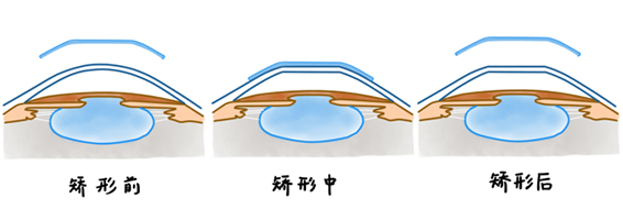 角膜塑形鏡通過(guò)減少周邊遠(yuǎn)視性離焦抑制眼球的過(guò)度增長(zhǎng),控制近視度數(shù)加深。